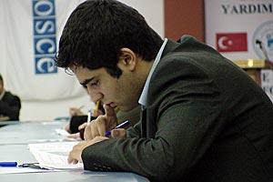 A young Azerbaijani answering questions during the final stage of a quiz programme sponsored by the OSCE Office in Baku, 15 May 2004.