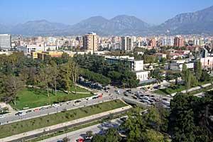 One of Tirana's most populated areas as seen from an 18-story building in the centre of the Albanian capital, November 2003.