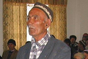 Saidulo Amirov, a Tajik man living on a state farm in Danghara, eastern Tajikistan, voices his concerns at a privatization assembly, May 2004.