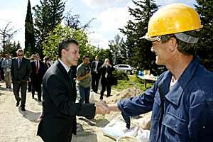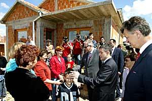 OSCE Chairman-in-Office Solomon Passy meets workers reconstructing a Serb returnee's house, Zadar hinterland, 11 May 2004.