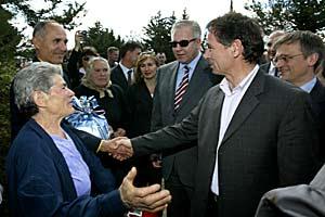 Jadranka Jonjic, a Croat who fled Bosnia with her children and settled in Croatia, is happy to meet OSCE Chairman Solomon Passy during his visit to the Zadar area, Croatia, 11 May 2004.