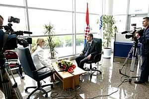 OSCE Chairman-in-Office Solomon Passy being interviewed by Croatian Radio Television at Zadar airport, 11 May 2004.