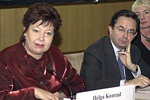 Helga Konrad is the new OSCE Special Representative on Combating Trafficking in Human Beings. Konrad and ODIHR Director Christian Strohal answer questions on trafficking at a Vienna press conference, December 2003.