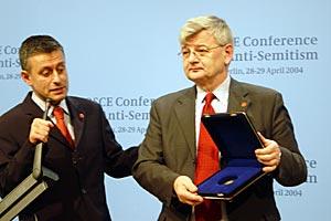 Chairman Solomon Passy addressed more than 500 delegates from the 55 OSCE States and their 10 partner countries in the second OSCE Conference on Anti-Semitism, Berlin, 28 April 2004.