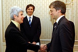 Head of the OSCE Mission to Croatia, Peter Semneby (right), discussed Croatia's media legislation reform with Deputy Prime Minister Jadranka Kosor, 29 March 2004.