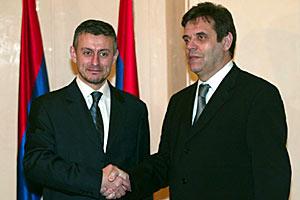 OSCE Chairman-in-Office Solomon Passy (left) met Serbia and Montenegro's Foreign Minister Goran Svilanovic in Belgrade on 24 March 2004.