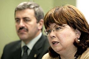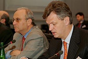 Bulgarian Deputy Foreign Minister Lubomir Ivanov, representing the OSCE Chair, listens to Irish Deputy Prime Minister Mary Harney at the OSCE's Dublin Seminar on Stimulating Foreign and Domestic Investments, 16 February 2004.
