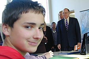 The OSCE Mission in BiH supports the education reform. Ambassador Robert M. Beecroft visited Petar Kocic Primary School in Sjenina Rijeka where students shared their ideas about education reform issues, 9 February 2004.