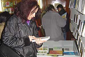 A woman browses through books during a special exhibition at the national library in Kumanovo, 23 January 2004. A selection of books in Macedonian, Albanian and Serbo-Croatian were purchased through a donation by the OSCE Mission to Skopje.