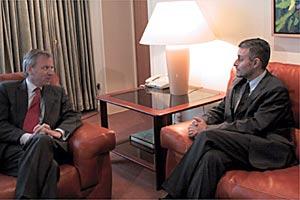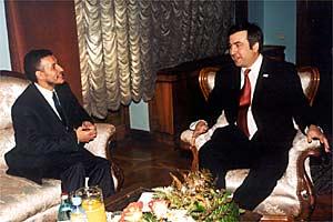 OSCE Chairman-in-Office, Bulgarian Foreign Minister Solomon Passy (left), meets Georgian President Mikheil Saakashvili in Tbilisi, 25 January 2004.
