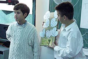 Students from Isak Samokovlija primary school celebrate Human Rights Day by presenting a Human Rights tree, Sarajevo, 10 December 2003.