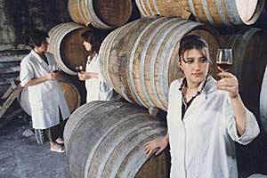 Professional cognac tasters enjoying their first probes from this year's production in the Goychay region, central Azerbaijan, November 2003.
