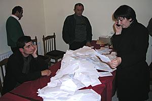 Election station officials prepare to count ballots at the polling station, Bolnisi, Georgia, 2 November 2003.