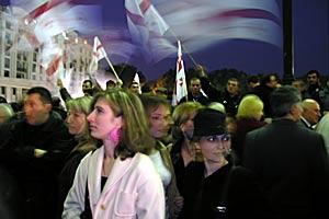 Protesters gather to hear opposition leaders speak in Freedom Square, Tbilisi, Georgia, 4 November 2003.
