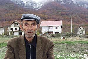 Marko, a Serb returnee, stands in front of his repaired, pre-war home in the settlement of Crni lug, near Bosansko Grahovo (BiH), November 2003.