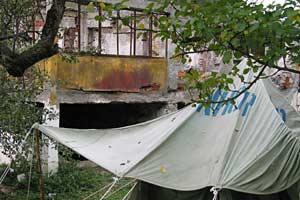 Many returnees have had to live in UNHCR-provided tents, their houses left uninhabitable by the conflict in Kosovo, November 2003.