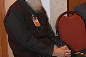 Nikodimus Tsarknias of the Macedonian Human Rights Movement in Greece attending a session on national minorities at the OSCE's Human Dimension Implementation Meeting in Warsaw, 15 October 2003.