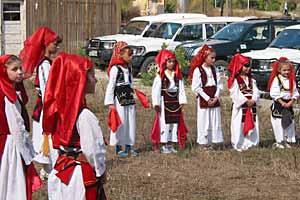 Children in Lipjan/Lipljan celebrate after the OSCE Mission in Kosovo inaugurated a library, which will house 19,500 Albanian and Serbian books, 11 September 2003.