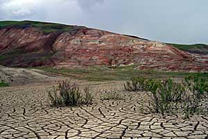 A view of the so-called "The Candycane Mountains" in Azerbaijan's countryside, where a range of low hills is marked by a multitude of colours, produced by ground waters that have altered the oxidation state of the iron compounds in the earth.