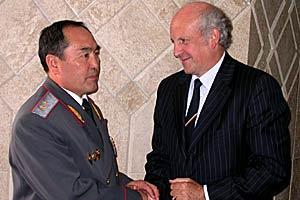 OSCE Senior Police Adviser, Richard Monk (right), and Kyrgyz Police Academy Rector General Beksultan Ishimov signed a key agreement on a comprehensive OSCE police assistance programme on 7 August 2003.