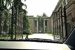The gates of Dushanbe's Presidential palace open for the Netherland's Foreign Minister motorcade, 11 July 2003.