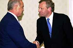 In the meeting with Minister de Hoop Scheffer, President Karimov outlines his priorities in working with the OSCE, 8 July 2003.