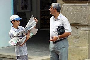 Newspapers and magazines on sale in Baku.