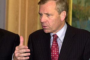 The OSCE Chairman-in-Office gives a brief statement on his meeting with Kazakhstan's Foreign Minister, Kasymzhomart Tokaev, 7 July 2003.