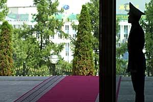 The next meeting in Almaty leads the Chairman-in-Office to the presidential palace where he meets Kazakhstan's President, Nursultan Nazarbayev, 7 July 2003.
