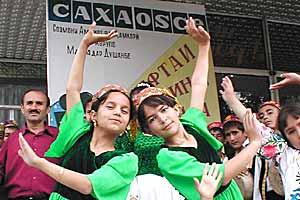 Children's dance group took part in opening festivities during a cinema tour in southern Tajikistan, organized by the OSCE Kulyab Field Office, May 2003.