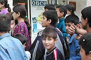 Some children saw their first film during an OSCE-sponsored tour of human rights films in southern Tajikistan, May 2003.