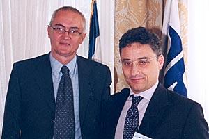 Head of the OSCE Mission to Serbia and Montenegro, Maurizio Massari (right) with Rodoljub Sabic, Serbian Minister for Local Self Government, 3 June 2003.