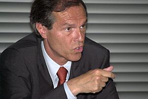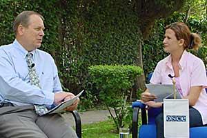 Head of the OSCE Presence in Albania, Ambassador Osmo Lipponen, during an interview with the national broadcaster TV Klan, Tirana, 10 May 2003.