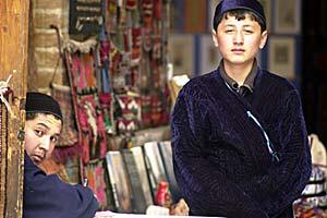 Young Uzbeks in the old town of Bukhara, one of Uzbekistan's most famous towns.