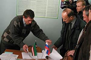 OSCE/ODIHR and Council of Europe experts examine preparations for the 23 March referendum in a polling station in Grozny, Chechnya, during an assessment visit on 3 March 2003.