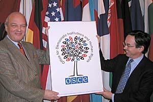 Ambassador Christian Strohal of Austria (right) succeeded Ambassador Gerard Stoudmann as OSCE/ODIHR Director.