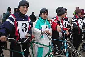 The OSCE Centre in Dushanbe promotes multi-ethnic friendship and dialogue at a bicycle competition, Southern Tajikistan, 22 December 2002.