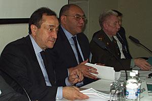 Ambassador Idil (left) and Kyrgyz Foreign Minister Aitmatov, at the Bishkek workshop on politico-military aspects of security, 26 November 2002.