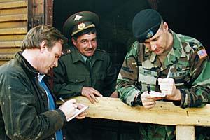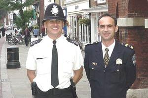 British and Croatian 'Bobbies' exchange information on Community Policing concepts as part of an OSCE Mission to Croatia assistance programme, November 2002.