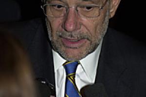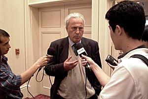 Freimut Duve, the OSCE Representative on Freedom of the Media, giving an interview at the margins of the Fourth Central Asian Media Conference in Tashkent, Uzbekistan, on 26 September 2002.