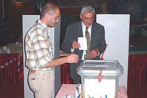 Ambassador Fieschi casts a ballot at the "test election" conducted at the OSCE Election Conference on 26 September.