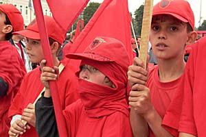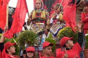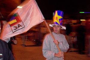 Celebrating Macedonians in the night after the parliamentary elections, 15 September 2002.