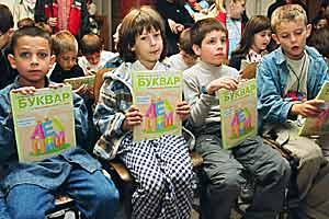 As part of a special campaign co-organized by the OSCE, every first grader in Serbia received new alphabet primers, September 2002.