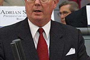 The Chairman of the Ad Hoc Committee on Transparency and Accountability in the OSCE, Congressman Steny Hoyer at the 11th Parliamentary Assembly Annual Session in Berlin, July 2002.