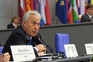 OSCE Representative on Freedom of the Media, Mr. Freimut Duve, addresses the Plenary at the 11th Parliamentary Assembly Annual Session in Berlin, July 2002.