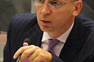 OSCE PA Secretary General Spencer Oliver addressing the 11th Annual Session in Berlin, July 2002.