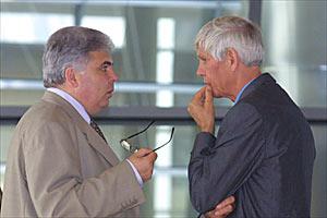 OSCE PA President Adrian Severin (left) with the Chairman of the General Committee on Democracy, Human Rights and Humanitarian Questions, Mr. Gert Weisskirchen, July 2002.