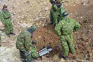 Destruction of weapons under the supervision of the Joint Peacekeeping Forces in Georgia, April 2002.