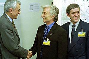 Ambassador Pascal Fieschi (left), OSCE Head of Mission, meets local political leaders in Prizren, southern Kosovo.
