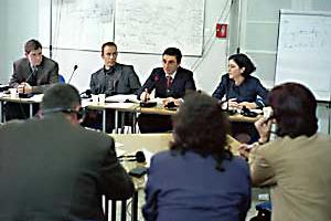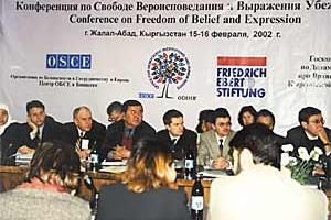 Participants discuss freedom of religion in Central Asia at a regional conference organized by the OSCE Office for Democratic Institutions and Human Rights (ODIHR) and the OSCE Centre in Bishkek, Jalal-Abad, Kyrgyzstan, 15-16 February 2002.